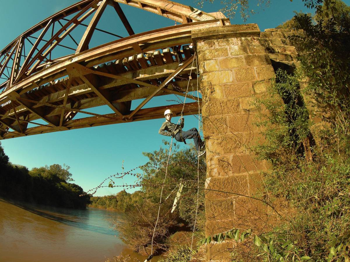 Na ocasião os estudantes conheceram a histórica ponte de ferro, onde passa a linha férrea. No local, com o auxílio do Curso de Educação Física da UNIJUÍ, em especial o professor Mauro Bertollo e os acadêmicos Pablo Reis e Alex Sandro Rodrigues, realizaram a prática do Rapel na cabeceira da ponte. A exploração da região se deu também com a prática de trilhas, quando contemplaram as belezas naturais deste ponto histórico de nosso município.