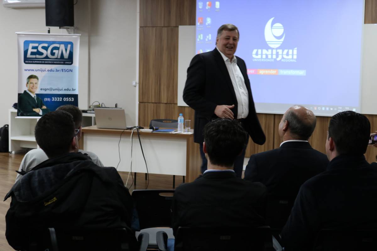 A aula inaugural foi realizada por Lauro Haas e ocorreu no Centro de Eventos do Campus Ijuí. Participaram o gerente executivo da Unidade de Gestão de Pessoas do Banrisul, Márcio Kaiser, que também é gerente executivo da Universidade Corporativa do Banrisul, o superintendente regional, Vilmar Ritter e o gerente do Banrisul em Ijuí, Solano Robin. Pela Unijuí estiveram presentes a chefe do Departamento de Ciências Administrativas, Contábeis, Econômicas e da Comunicação (DACEC), Euselia Paveglio Vieira, na oportunidade também representando a Reitoria e o coordenador do curso, professor Daniel Baggio.