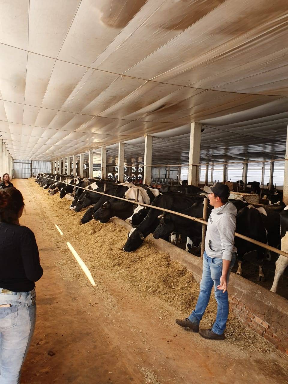 A primeira visita aconteceu em Ajuricaba, na Agropecuária Taia, de Nathan Bandeira. Esta propriedade possui vacas confinadas em sistema de Conpost Barn em túnel de vento. São 178 animais em ordenha e uma média de 34 litros/vaca/dia. Estiveram presentes na visita o técnico responsável pela qualidade do leite, Marcio Erpen Lima e o nutricionista Paulo Alexandre Mikulis.