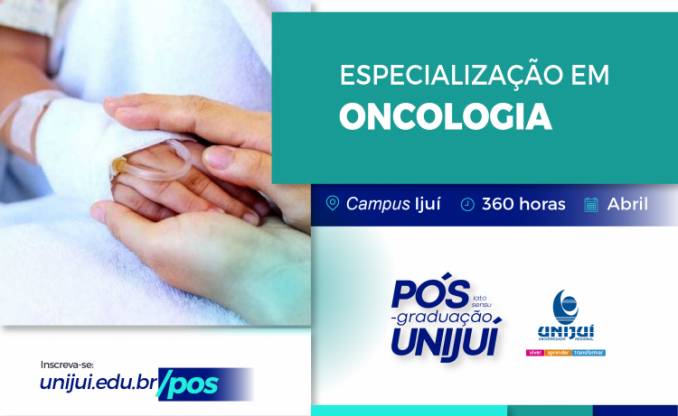 Com inscrições abertas até o dia 05 de abril, a especialização em Oncologia ofertada pela Unijuí chega a sua 5ª edição. O curso oportuniza a formação de profissionais especialistas em oncologia com base nos conhecimentos, habilidades e atitudes necessárias para a identificação dos impactos políticos, sociais e culturais do câncer, no que tange o cuidado com o indivíduo doente, sua família, assim como aqueles sob o risco de adoecer devido ao câncer e, ainda, os sobreviventes da doença.