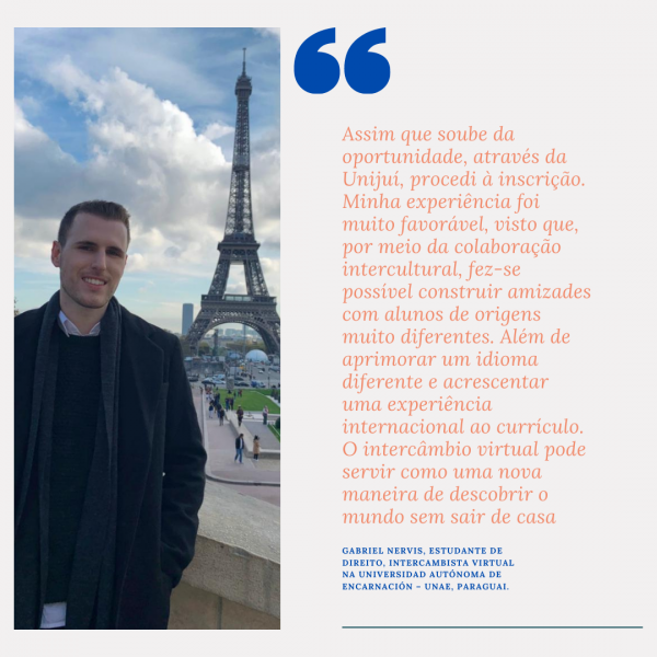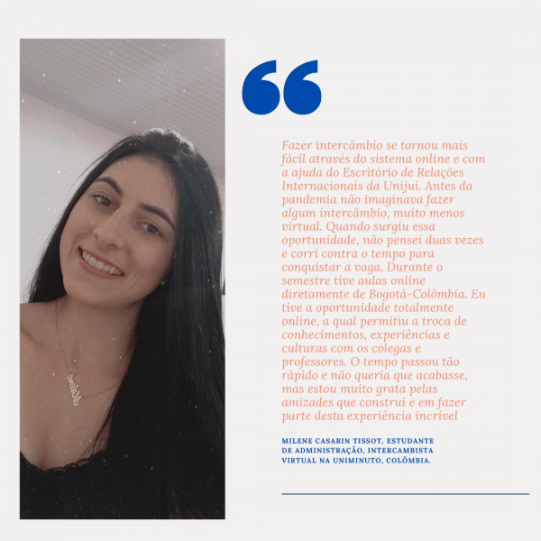 Desde 2020 acadêmicos da Unijuí vêm participando de intercâmbios virtuais em universidades parceiras. Confira alguns relatos: