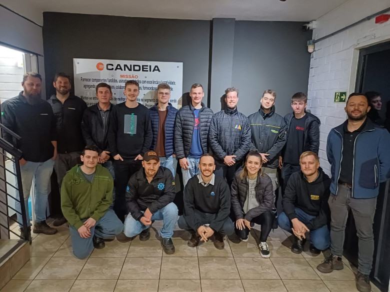 Estudantes do curso de Engenharia Mecânica realizaram uma visita à empresa Candeia, em Santa Rosa. A atividade ocorreu no fim do mês de agosto e foi feita com os acadêmicos da disciplina de Fundição e Usinagem, do quarto módulo da formação. A visita foi acompanhada pelos colaboradores da empresa, o coordenador de Produção Fundição, Donizete Frank; o coordenador de Engenharia, Andreas Miguel Diesel; e o coordenador do Processo de Fundição, Jean Menezes.