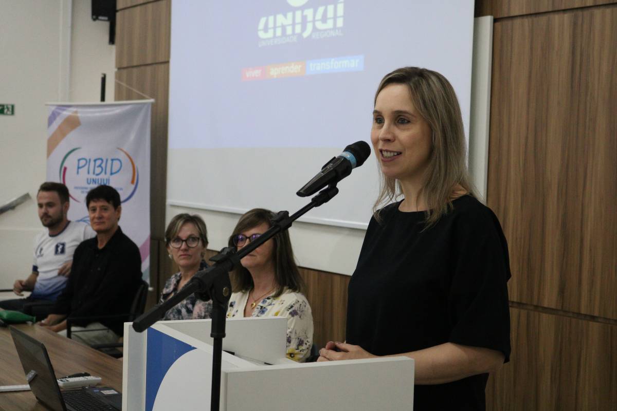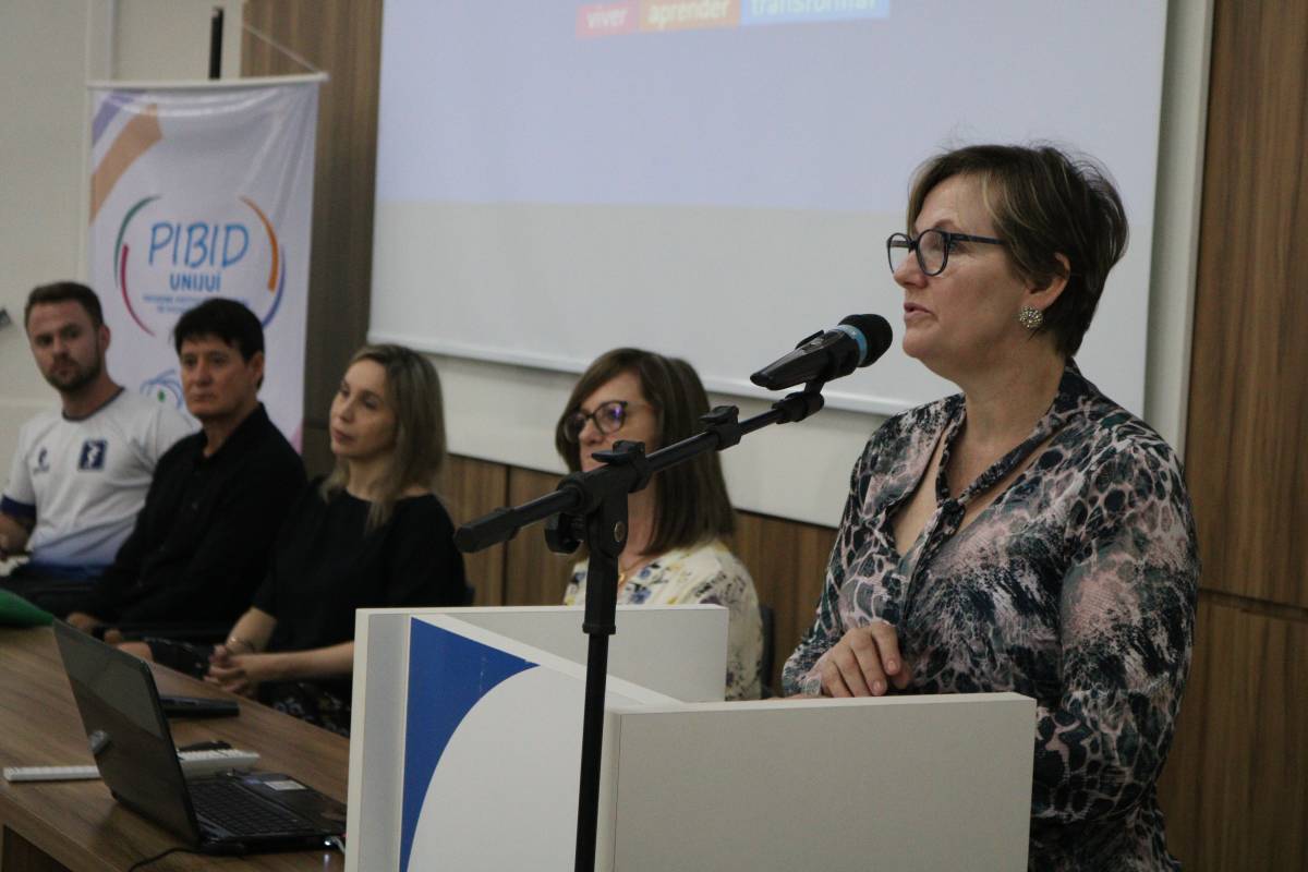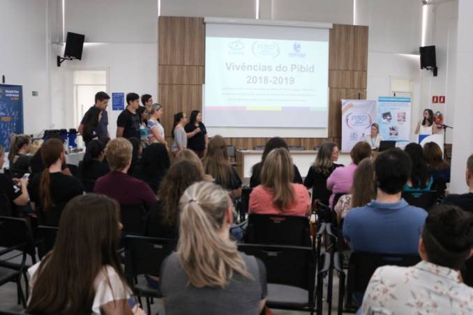 A programação, que aconteceu no Centro de Eventos do campus Ijuí, contou com a participação de professores de escolas ligadas a 36ª e 17ª Coordenadorias Regionais de Educação, sediadas em Ijuí e Santa Rosa, respectivamente, e também da Rede Municipal de Ijuí, por meio da Secretaria Municipal de Educação. Durante toda a manhã, estudantes dos cursos de licenciatura da Universidade que integram as duas iniciativas apresentaram as atividades desenvolvidas nas escolas da região, momento que teve o objetivo de enriquecer e avaliar a experiência nestes dois programas de formação. Na abertura oficial do evento, a Vice-Reitora de Graduação, professora Cristina Pozzobon, fez uma saudação institucional em nome da Universidade. O Programa Institucional de Bolsas de Iniciação à Docência (Pibid) e o Programa Residência Pedagógica, ambos financiados pela Capes, são ações da Política Nacional de Formação de Professores do Ministério da Educação (MEC).