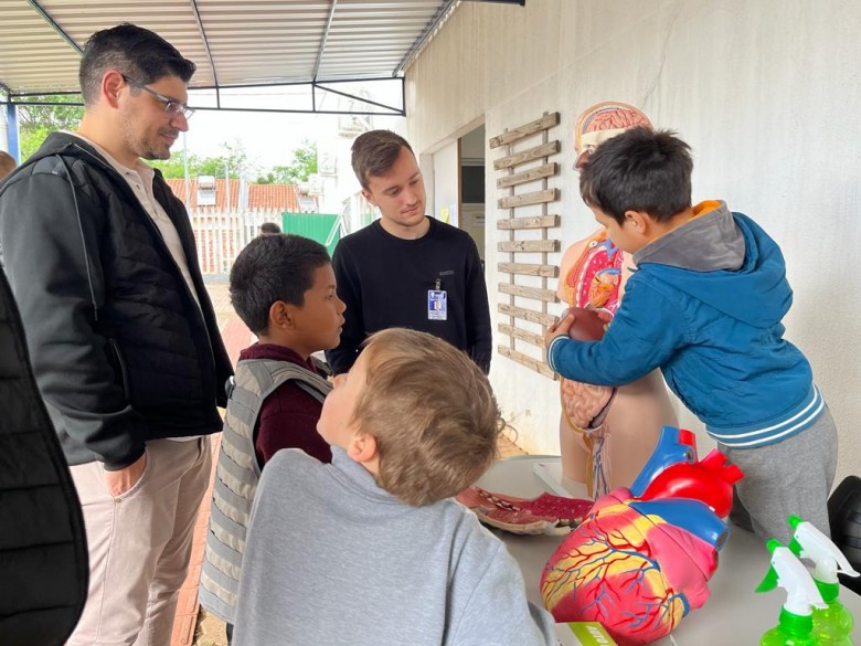O evento também contou com um momento especial voltado ao público infantil. As estudantes Andieli, Bruna, Julia e Natalia organizaram uma atividade educativa que incentivava as crianças a se desconectarem dos celulares e redescobrirem brincadeiras tradicionais, como pular corda, pega-pega e esconde-esconde. A ação foi complementada com a entrega de folders contendo frases motivacionais e com a realização de pinturas faciais, promovendo interação, criatividade e movimento.
