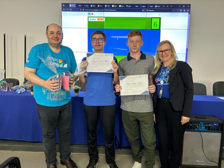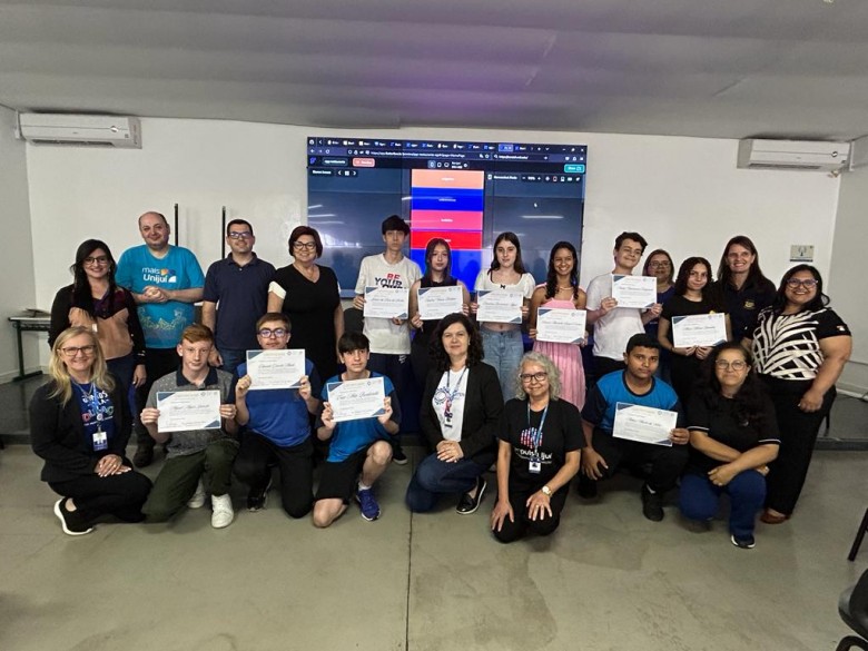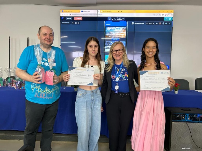 Na noite de ontem, no Espaço + Inovação da Unijuí, foi realizada a formatura do Projeto de Extensão Programe o seu Futuro. Coordenado pelo professor Marcos Cavalheiro, o projeto envolveu, neste ano, estudantes dos Ensinos Fundamental e Médio da Escola Estadual São Geraldo, que participaram de oficinas, onde aprenderam a lógica da programação e o pensamento computacional, utilizando as plataformas Scratch e FlutterFlow.
