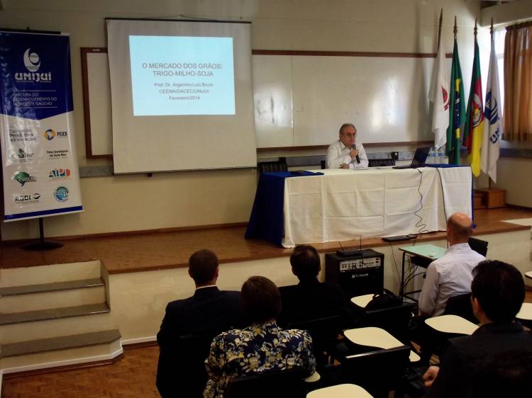 O Workshop Inovação e Extensão Produtiva foi realizado durante a manhã de sexta-feira (28), na UNIJUÍ Câmpus Santa Rosa. O evento contou com a palestra do professor Dr. Argemiro Luis Brum que discutiu os assuntos referentes a conjuntura econômica internacional, mercados agrícolas e negócios.