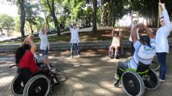 Uma atividade e ambiente externo foi realizada com o grupo de cadeirantes do Programa Pet – Saúde na tarde de quarta-feira, 5, na Praça da República.
