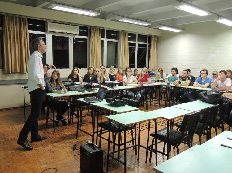 A disciplina de Administração Empreendedora do Curso de Administração da Unijuí Câmpus Santa Rosa está realizando um Ciclo de Palestras cujo tema central é o Empreendedorismo. Esta atividade teve continuidade na noite de quarta-feira (7), através do assunto: “Desafios e Oportunidades do Empreendedorismo no Setor Industrial: O Caso da Libidu´s Moda Íntima”, com o palestrante Sidnei Luis Zimmer, sócio e Diretor Comercial e de Marketing da empresa.