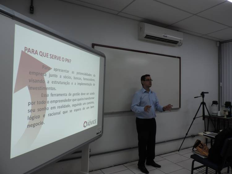 Fabrício durante a oficina trabalhou com os participantes a importância da elaboração do Plano de Negócio, explicitando os benefícios do planejamento do negócio antes que este seja implementado. Em sua explanação, também reafirmou a ideia de que planejamento representa pensar a ação, ou seja, antecipar-se a ação a fim de evitar ou minimizar erros e gastos desnecessários. Também, utilizou-se de dinâmicas de grupo para demonstração da ferramenta de análise do ambiente em que a empresa encontra-se inserida (análise SWOT), onde o empreendedor deve identificar quais as forças e fraquezas, oportunidades e ameaças internas e externas que impactem na empresa.