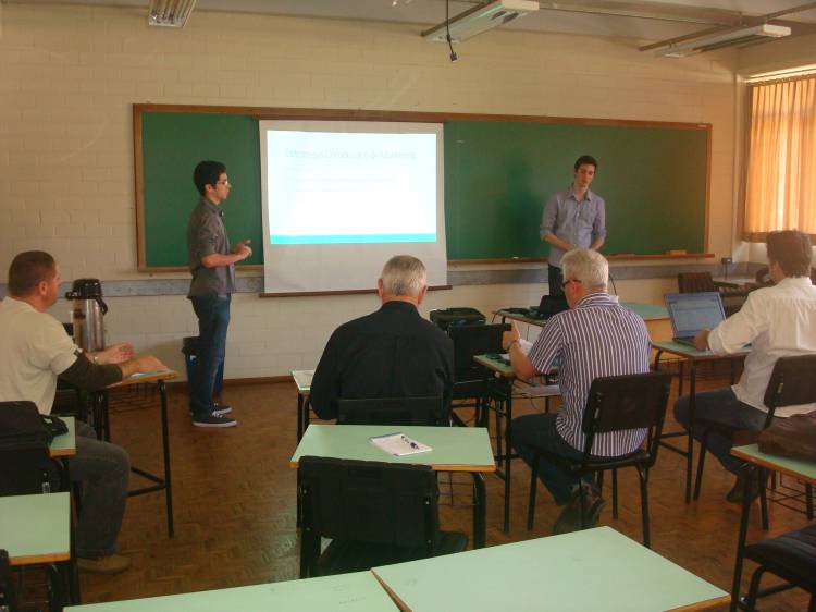 Lucas Hansel e Diogo Alan dos Santos apresentaram o plano de negócios da empresa Elede Soluções WEB. Uma empresa que estará atuando no ramo tecnológico, proporcionando aos clientes soluções para o mundo digital. Serão oferecidos serviços como: registro de domínios, hospedagem web, criação de websites, lojas virtuais e aplicativos móveis.
