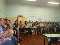 A Coordenadora do Projeto Cidadania para Todos, Ester Eliana Hauser e a professora responsável pelo projeto em Santa Rosa, Lurdes Aparecida Grossmann, ministraram a primeira oficina de formação de professores com as técnicas dos círculos restaurativos e a comunicação não violenta. Na oportunidade também foi entregue a diretora da escola a proposta do cronograma de trabalho para o primeiro semestre de 2015.
