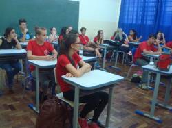 A Escola Águia de Haia de Três Passos participou na última quinta-feira, dia 26, da oficina ministrada pelo Projeto de Extensão Cidadania Para Todos, vinculado ao Departamento de Ciências Jurídicas e Sociais da UNIJUÍ, referente a 9º Mostra de Cinema e Direitos Humanos no Hemisfério Sul.