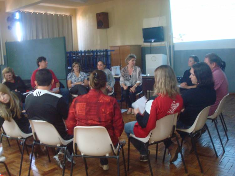 O objetivo do encontro foi esclarecer a efetividade das práticas restaurativas com um grupo de docentes, anteriormente utilizadas com alunos da escola.