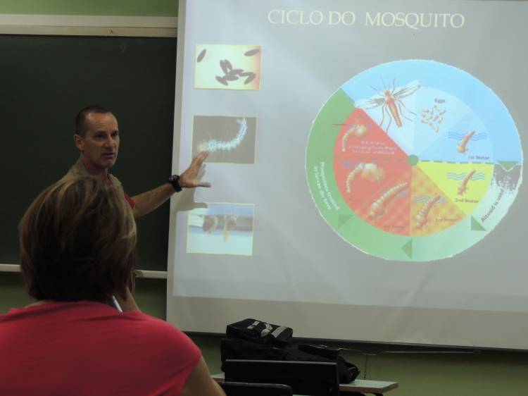 De acordo com o professor coordenador, os estudantes fazem um treinamento para identificar o mosquito em suas três fases: larva, pupa e adulto (o ovo do mosquito, primeira fase, não é possível identificar, pois é invisível a olho nu) e obter informações que poderão tirar as dúvidas da comunidade. Agora, in loco, com os agentes de saúde do município, os estudantes participam das abordagens às pessoas e aplicam aquilo que aprenderam na capacitação.