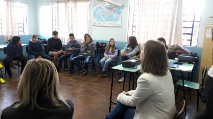 A atividade integra um conjunto de ações que serão realizadas com os alunos até o final do ano, foi desenvolvida pelas professoras do curso de Direito, Fernanda Serrer, Francieli Formentini e pela estudante e bolsista do projeto de extensão "Conflitos Sociais e Direitos Humanos: Alternativas Adequadas de Tratamento e Resolução", Juliana Hermann.