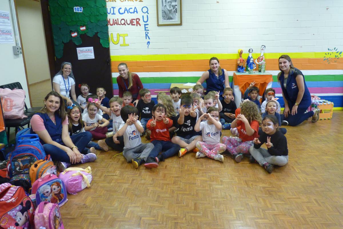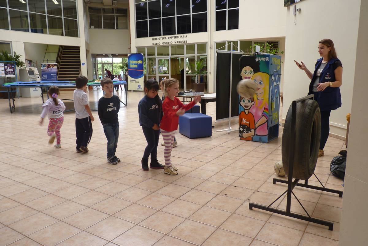 A programação iniciou na sexta-feira, dia 06, e segue amanhã nos turnos da manhã e tarde, finalizando as atividades da semana do Dia das Crianças. O curso de Educação Física também teve participações nas ações desenvolvidas com as crianças.