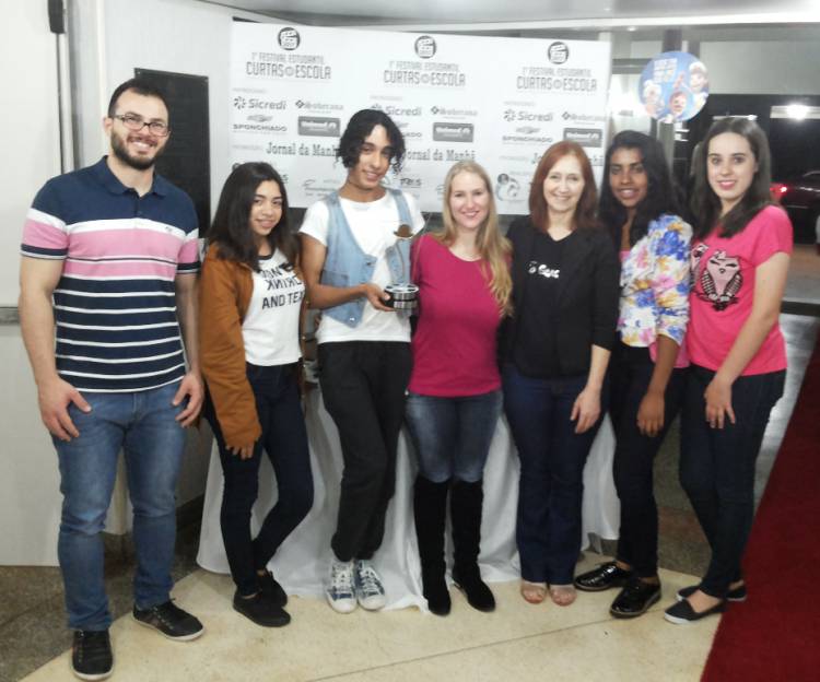Em noite de premiação, realizada na sexta-feira, 17 de novembro, e red carpet participantes do projeto de extensão Escola, Currículo, Conhecimento prestigiaram a premiação dos alunos Emily Carolina da Costa e Vinicius de Ramos da Escola São Geraldo, vencedores do prêmio de melhor roteiro na categoria documentário Juvenil.