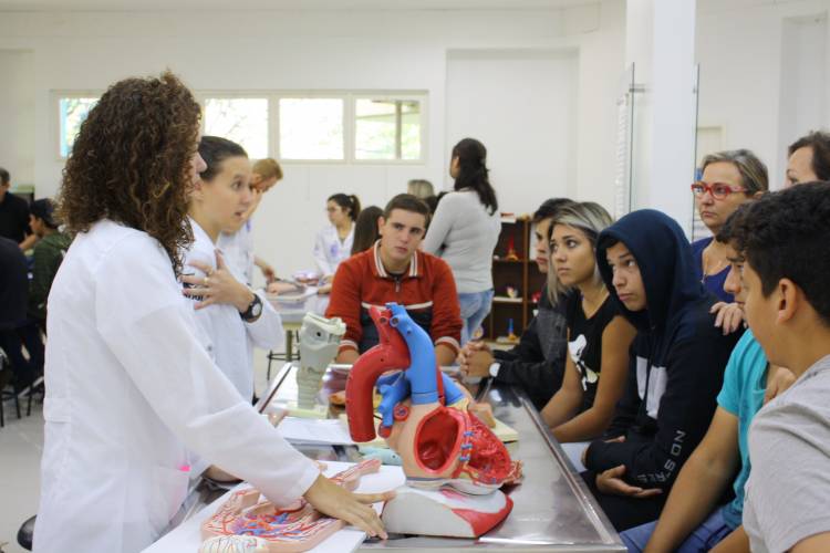Durante a oficina “Conhecendo o corpo para cuidar da saúde”, os alunos do 8º e 9º anos da Escola Thomé de Souza, de Ijuí, reforçaram os conhecimentos adquiridos em sala de aula, com o material didático disponível no Laboratório de Anatomia da Universidade e com o auxílio de estudantes da graduação da Unijuí.