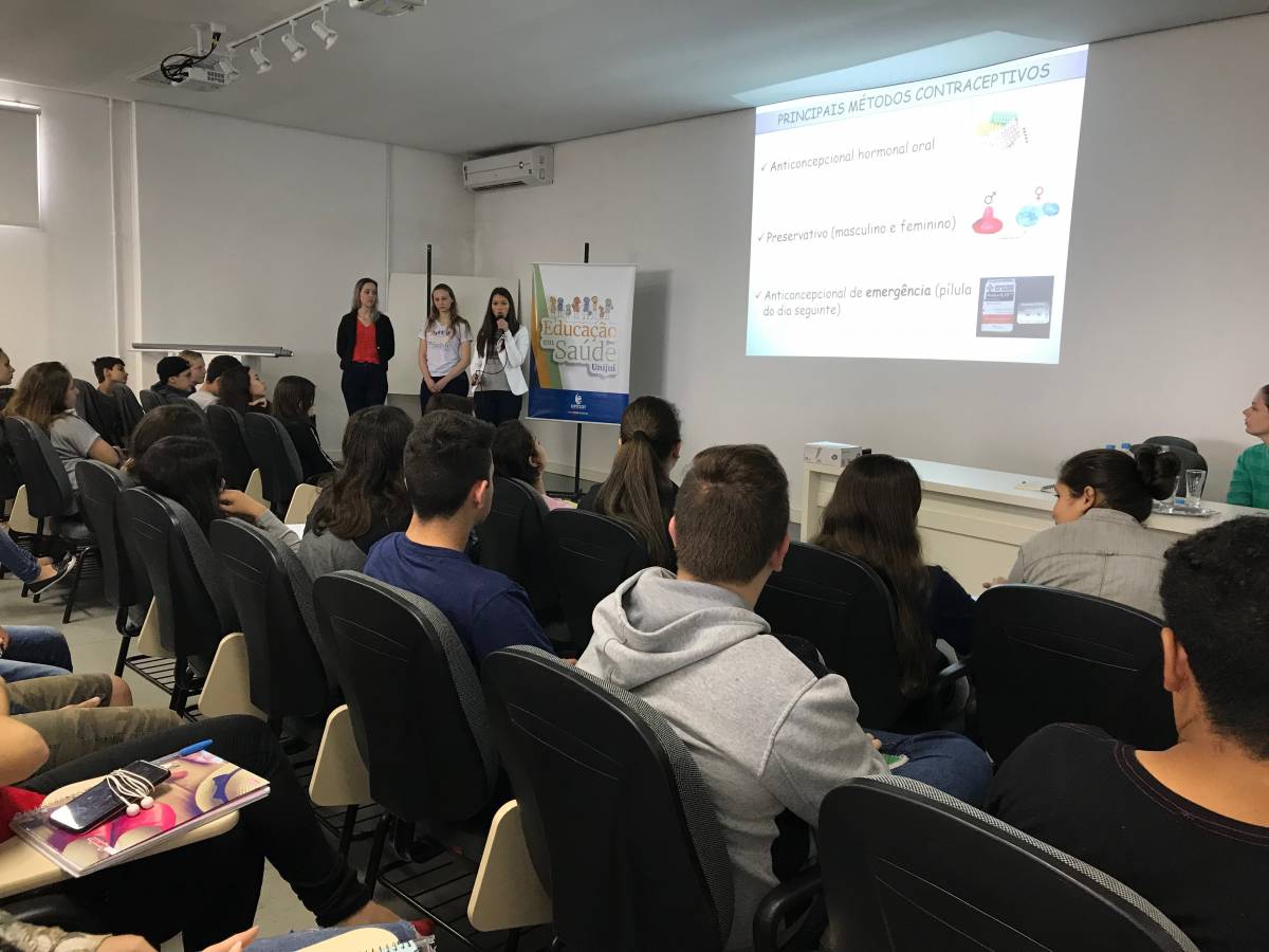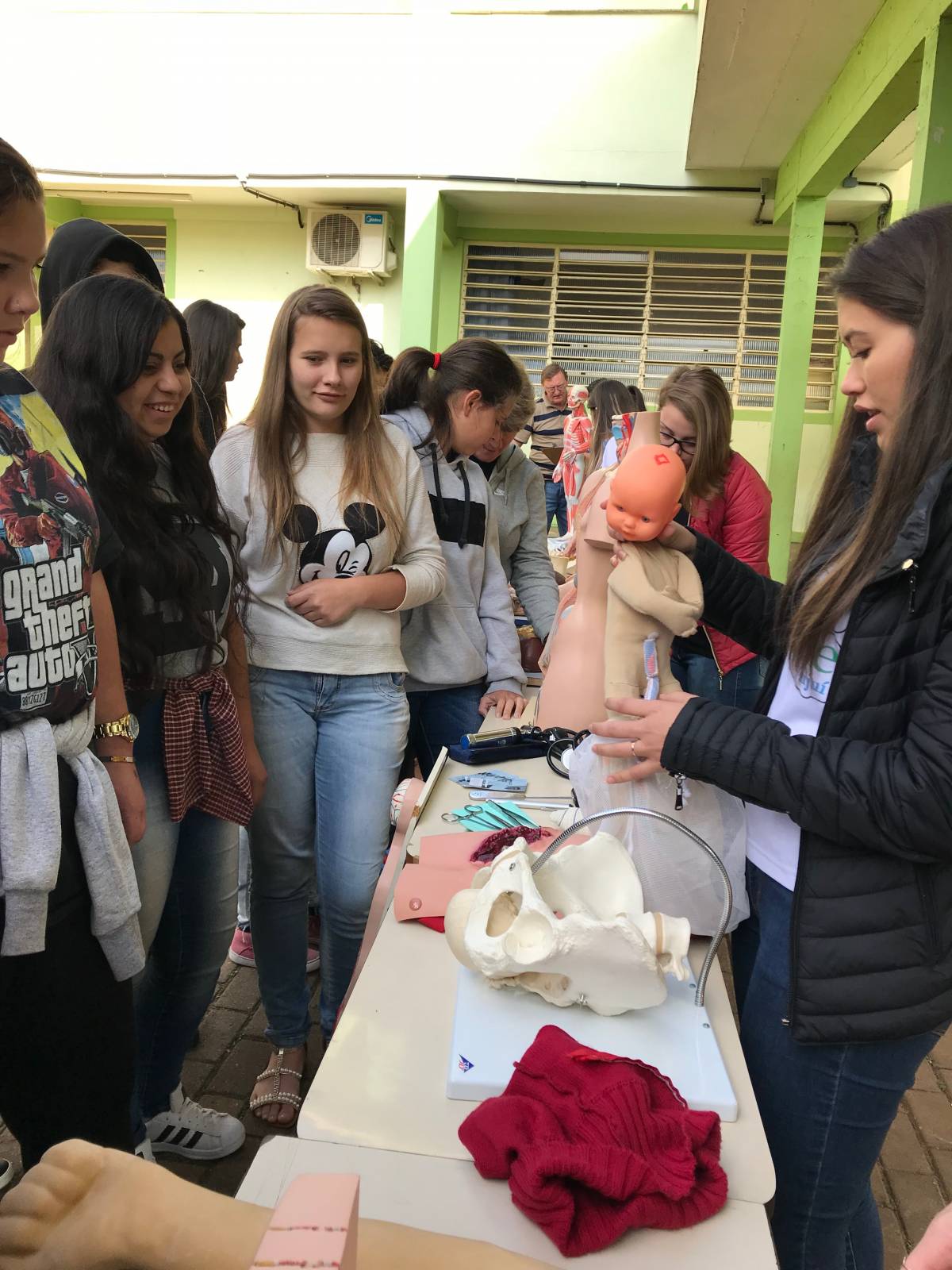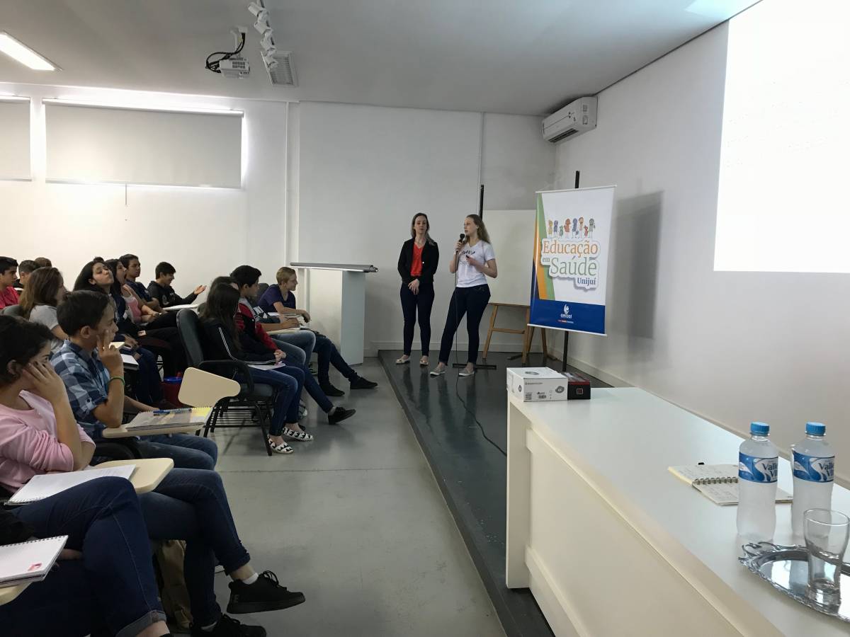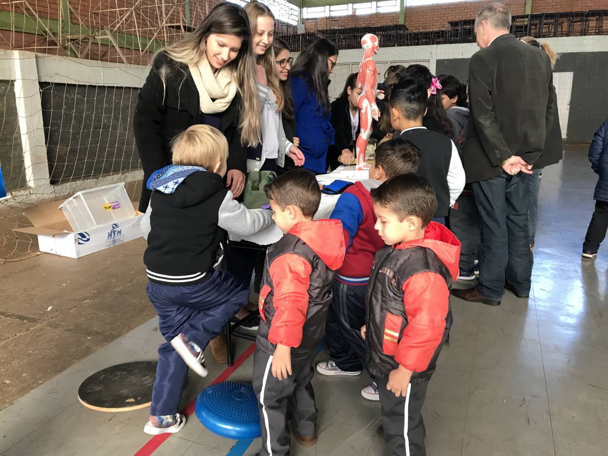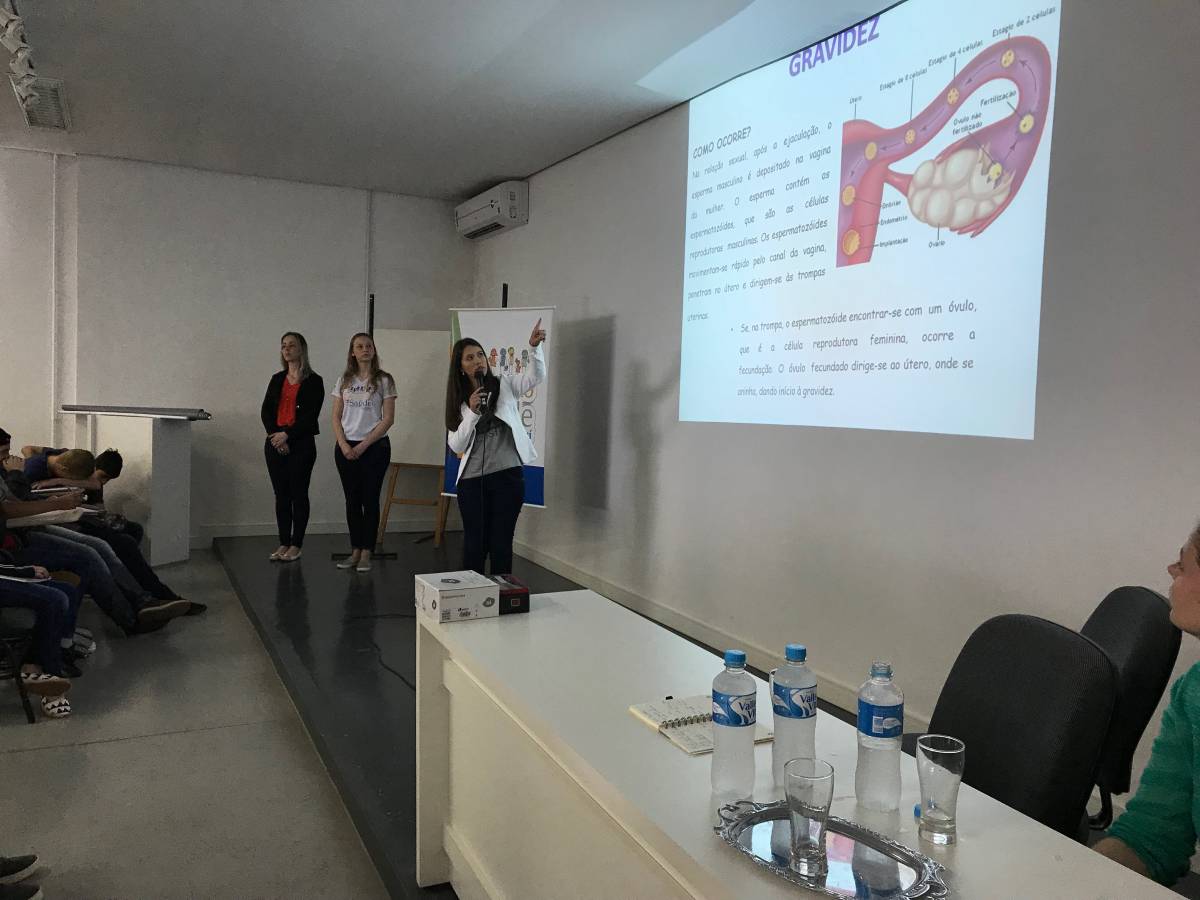 A coordenadora do Projeto, professora Angélica Moreira, acompanhada das professoras, Adriane Huth, Marinez Petenon, Marilei Uecker e bolsistas do Projeto, apresentou o funcionamento, as atividades, bem como o resultado das ações com a comunidade. Neste ano foram realizadas uma série de atividades, entre elas:
