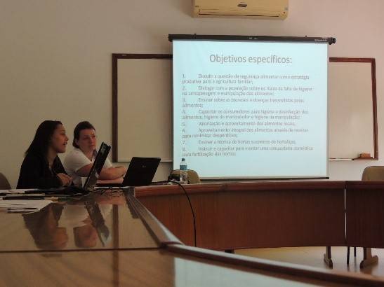- as estudantes de Nutrição Cristiane Zeni Bender Slaviero e Nicole Mantovane da Silva focaram a pesquisa na segurança alimentar, destacando o cultivo orgânico, a criação de hortas e a higienização, conservação e reaproveitamento de alimentos.