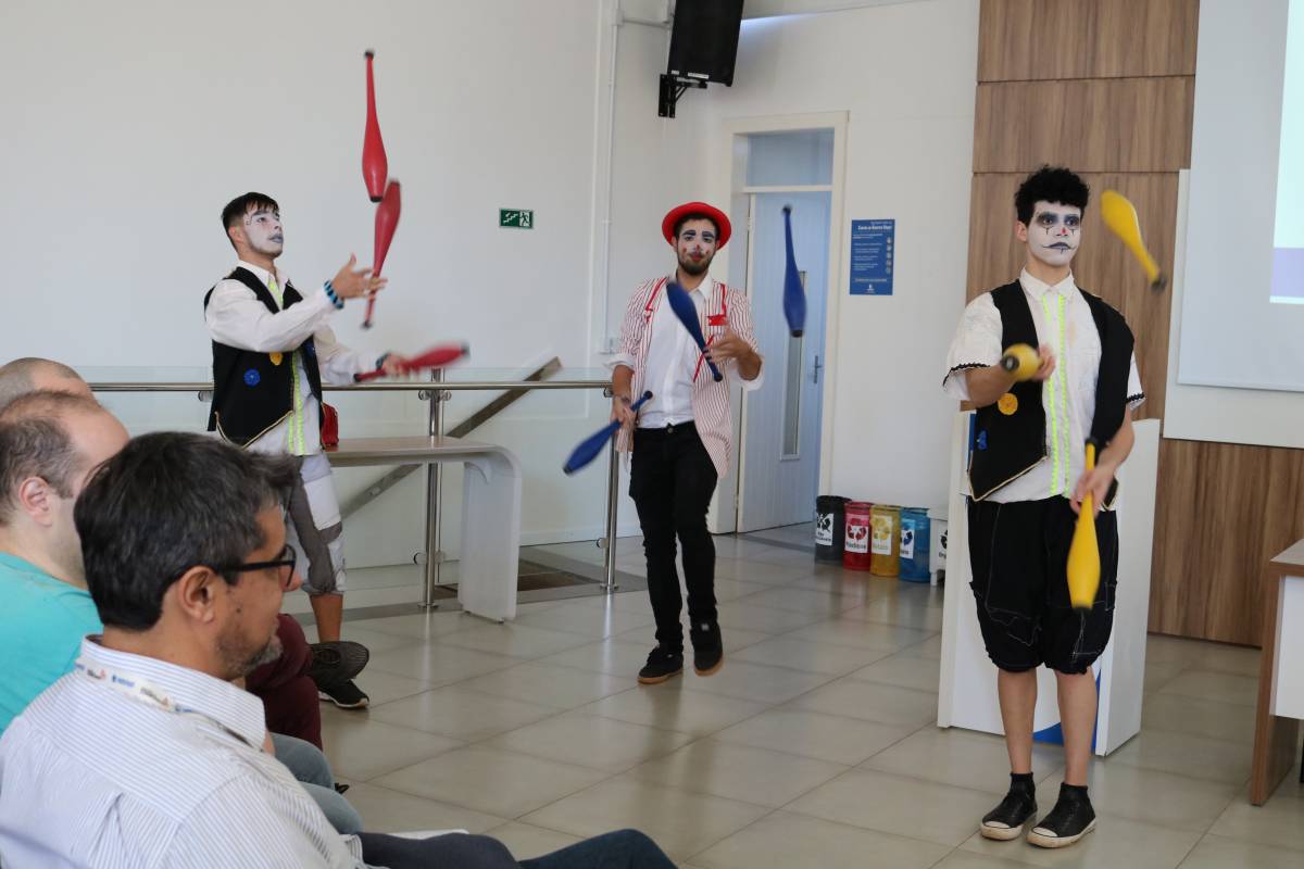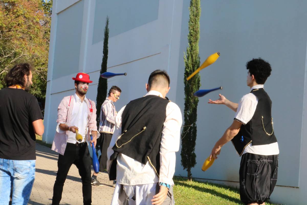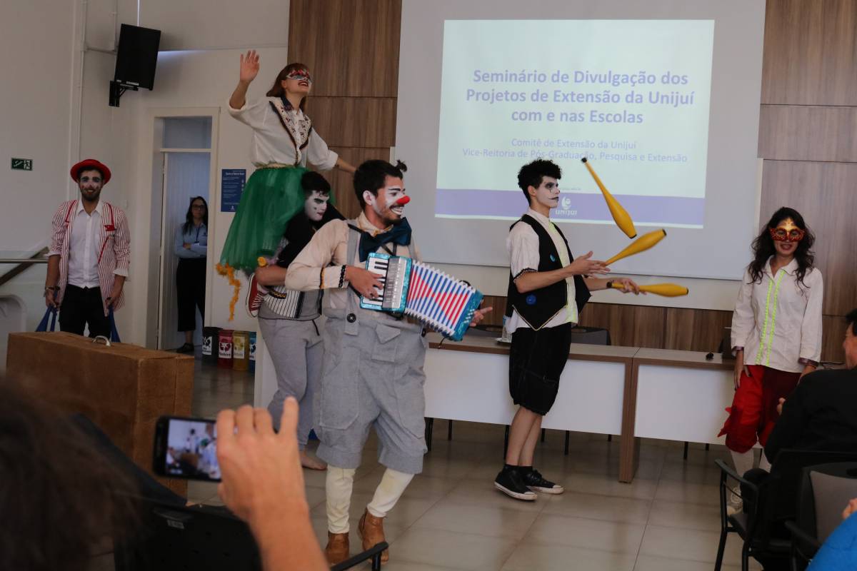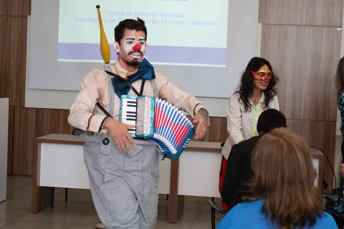 Na abertura do evento, o professor Fernando Jaime González, Vice-Reitor de Pós-Graduação, Pesquisa e Extensão da Unijuí, afirmou que a extensão na Universidade é pensada a partir das diferentes áreas, no que já está sendo feito nas escolas e o que ainda pode ser feito. A abertura também contou com uma intervenção artística da Cia. Cadagy com o público do evento.