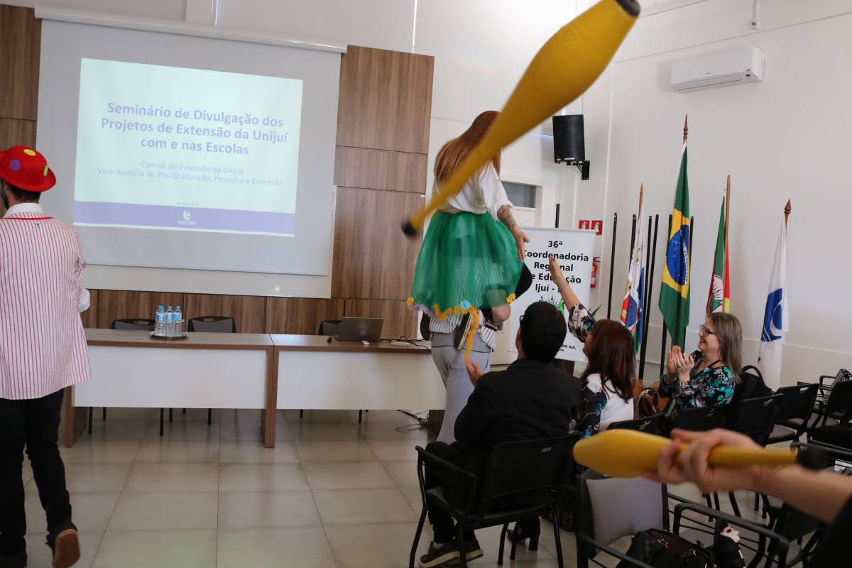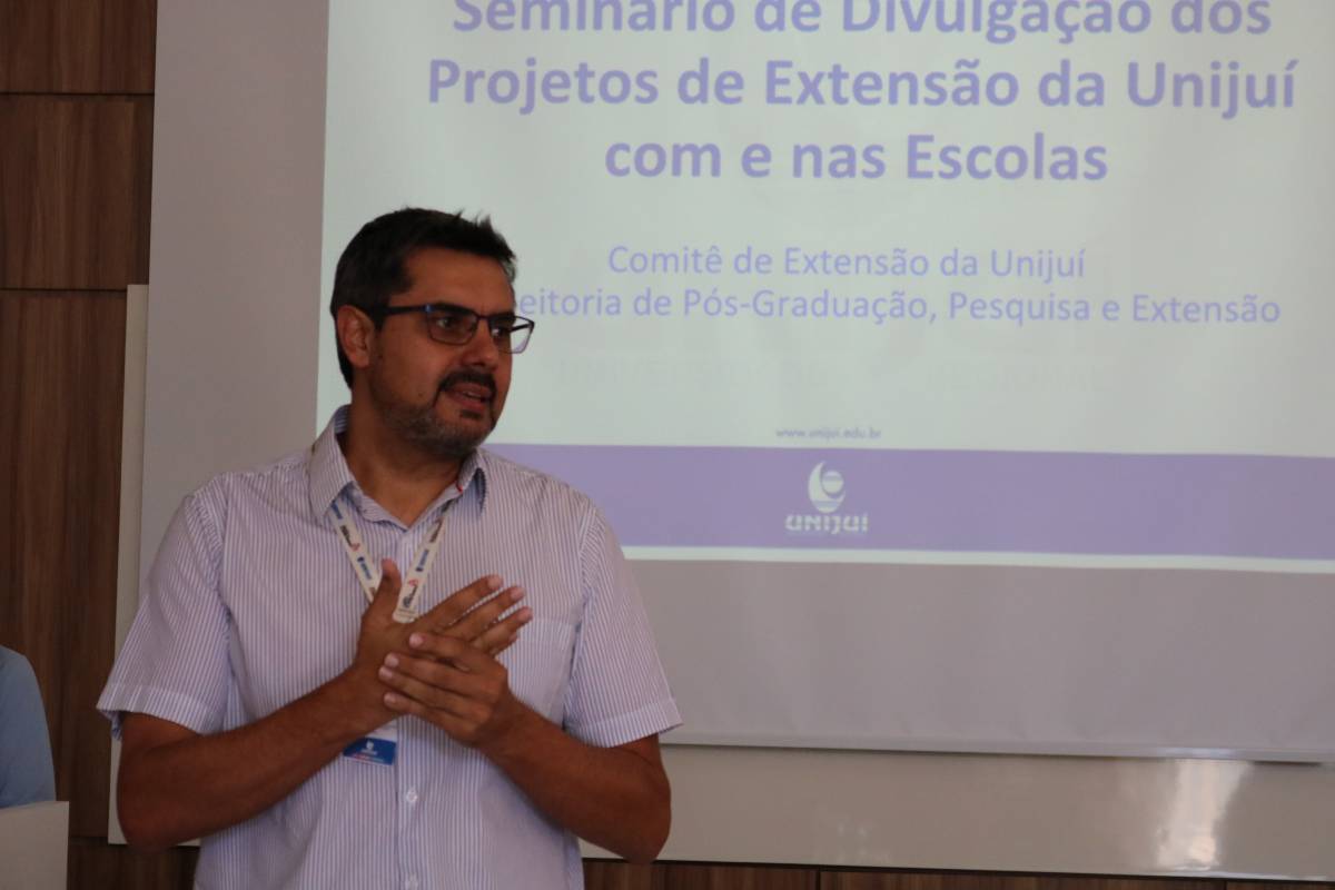 A Vice-Reitoria de Pós-Graduação, Pesquisa e Extensão da Unijuí promoveu, nesta quinta-feira, 28, o Seminário de divulgação dos Projetos de Extensão da Unijuí. O evento teve o objetivo de apresentar os projetos de extensão que são desenvolvidos em escolas da área da 36ª Coordenadoria Regional de Educação – CRE.
