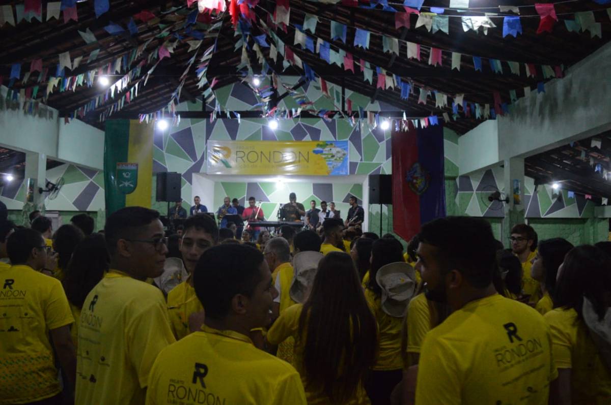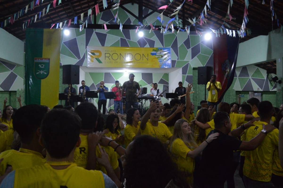 O fim da tarde começou com apresentação da banda do Exército, que fez releituras de músicas de sucesso, ao passo em que os estudandes uniram-se e cantaram em uma só voz. Logo após, às 19h, os rondonistas acompanharam uma formatura militar, que também integrava o cronograma de recepção aos acadêmicos que atuarão em 12 municípios, nos quais desenvolverão atividades em 28 áreas do conhecimento.