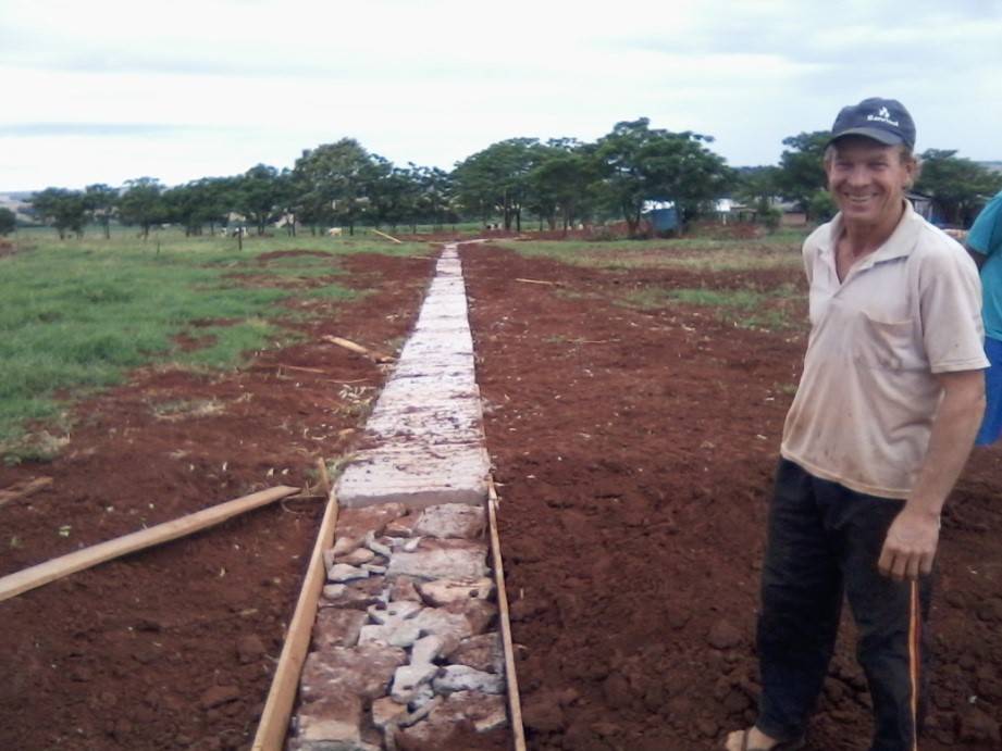 Para os agricultores que já possuem sala de espera foram feitos corredores de 70cm largura de 8cm de espessura, sendo utilizados 3,6m³ por unidade.