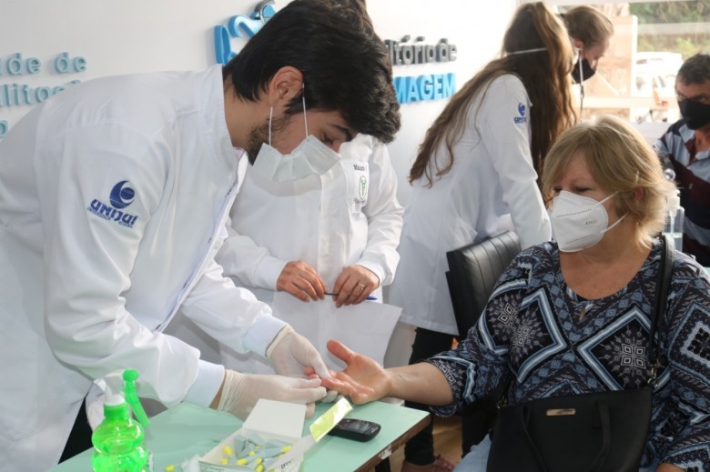 “Estabelecemos uma conversa informal com o paciente, questionando como é a sua alimentação em casa e orientando sobre alimentos que contenham substâncias que são nocivas, que fazem com que ocorra uma elevação da pressão arterial e uma descompensação do diabetes. Inclusive, entregamos um pacotinho com alguns temperos, estimulando que estas pessoas façam uso em sua alimentação”, explicou a coordenadora do projeto Educação em Saúde, professora Angélica Cristiane Moreira.