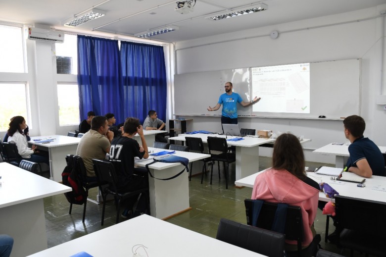 Nesta quinta-feira, dia 1º de setembro, tiveram início as oficinas de Introdução à Eletrônica, mais uma ação promovida pelo Projeto de Extensão Física para Todos, da Unijuí. As oficinas são um conjunto de atividades práticas que serão desenvolvidas com o objetivo de proporcionar aos alunos da Educação Básica um primeiro contato com a eletrônica.