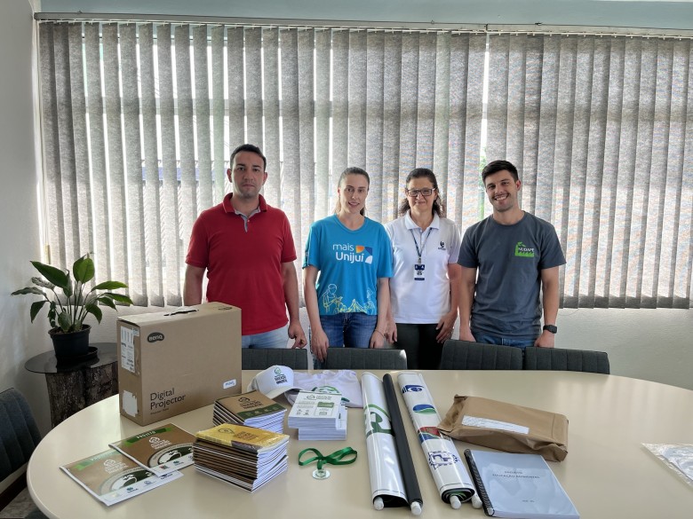 Neste sentido, a Unijuí realizou no dia 31 de março, a entrega do relatório de atividades executadas durante o ano de 2022 para a Secretaria de Meio Ambiente de Ijuí. Além disso, também foram entregues projetor, livros, dentre outros materiais, como camisetas, bonés e banner, confeccionados durante a realização do projeto. Participaram do ato a coordenadora do Projeto de Educação Ambiental da Unijuí, professora Caroline Radüns; Analista de Projetos da Agência de Inovação e Tecnologia da Unijuí (Agit), Miriam Spohr; o secretário de Meio Ambiente de Ijuí, Yuri Pilissão e o coordenador socioambiental da Semma, Mateus de Freitas.