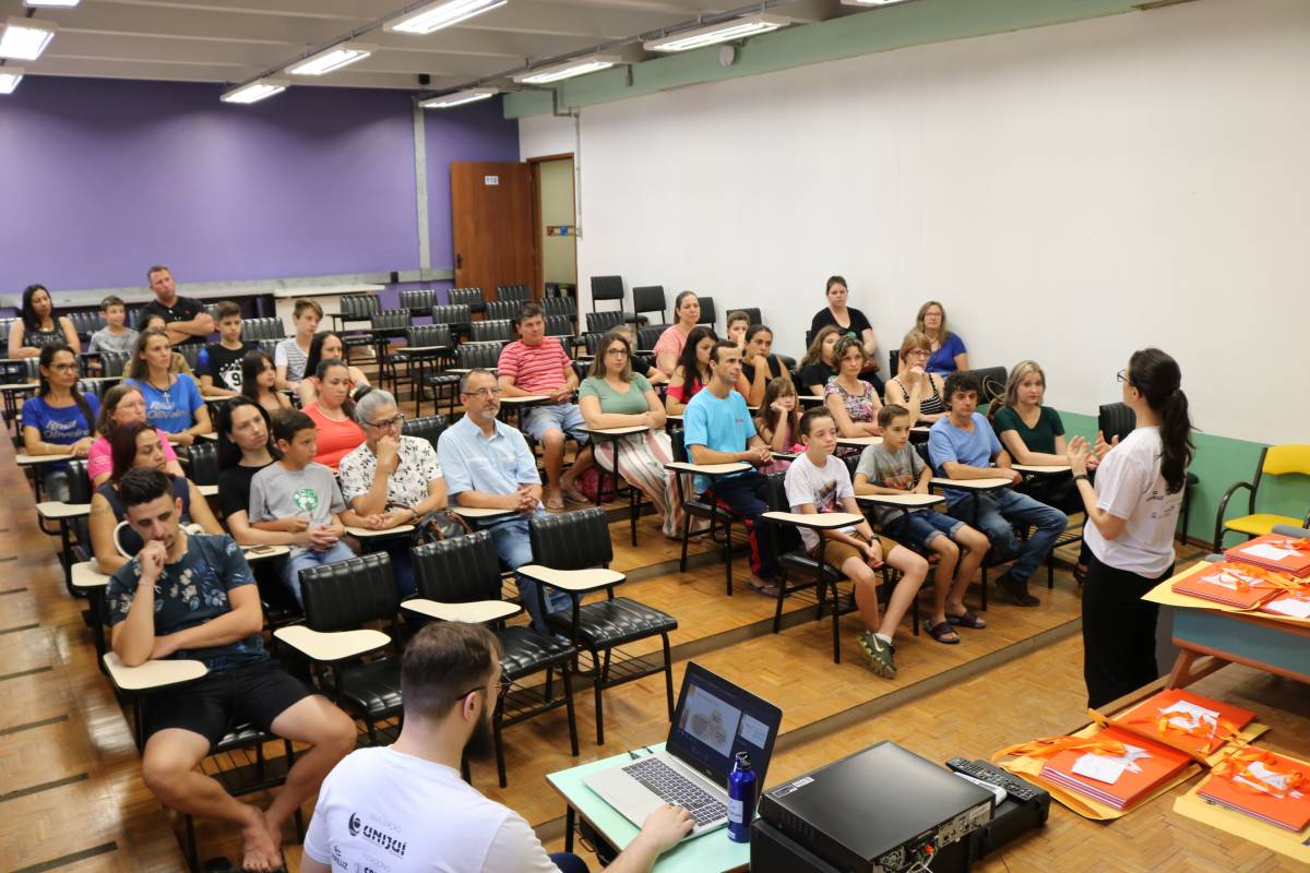 A Unijuí realizou o encerramento da primeira edição do Projeto de Extensão "Programe o Seu Futuro" no campus Santa Rosa na noite de quinta-feira (28). A programação contemplou a apresentação dos protótipos desenvolvidos pelos estudantes por meio da ferramenta Inventor 2, e contou com a participação dos pais e familiares dos envolvidos, assim como autoridades, professores das escolas Estaduais, Municipais e Particulares participantes do projeto, Pró-Reitor do campus Santa Rosa, Marcos Paulo Scherer e equipe do Projeto “Programe o seu Futuro”.