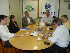 A Reitoria também participou da assinatura de um convênio entre a Universidade e o Sindicato da Indústria da Construção Civil e Mobiliário (Sinduscom) de Santa Rosa, para que o curso de Engenharia Civil preste serviços às empresas associadas ao sindicato. Os professores Martinho, Laerde e Pedro reuniram-se durante a tarde com os bancos Banrisul e Sicredi de Santa Rosa.