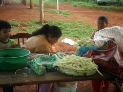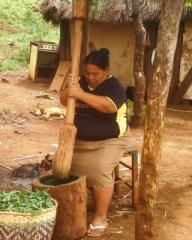 Legendas das fotos: Coleta do fuá; Coleta de alimentos Mato Queimado Guarita; Preparando caraguatá; Socando mandioca brava no pilão