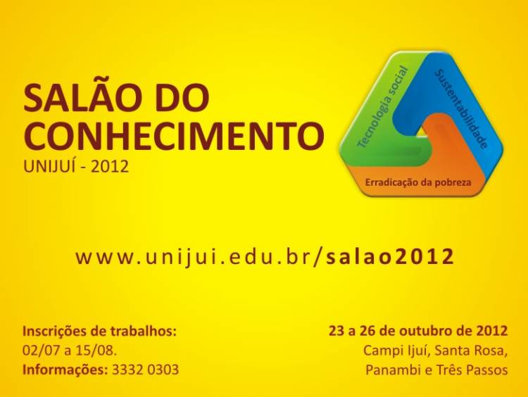O Salão do Conhecimento da UNIJUÍ integra as atividades da SNCT - Semana Nacional de Ciência e Tecnologia, promovida pelo Ministério da Ciência e Tecnologia e, por isso, anualmente, trabalha com temática semelhante. Neste ano, o tema “Tecnologia social, sustentabilidade e erradicação da pobreza” perpassa as discussões da Conferência Rio+20, evento organizado pela ONU, realizado no Brasil no mês de junho de 2012, com participação de diversos os países. O objetivo é de discutir os diversos aspectos envolvidos nas tecnologias sociais, bem como os desafios da sustentabilidade nas suas dimensões ambiental, econômica e social.