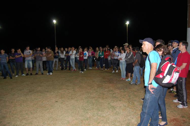 Os acadêmicos foram reunidos no auditório central, onde tiveram um encontro com professores e Reitoria da Universidade. Estiveram presentes a Vice-Reitora de Graduação, Cátia Nehring, o Vice-Reitor de Administração, Laerde Gehrke, o Pró-Reitor da UNIJUÍ Campus Santa Rosa, Pedro Büttenbender, o chefe do Departamento de Humanidades e Educação, Dari Göller, o coordenador do curso de Educação Física da UNIJUÍ, Luiz Serafim de Mello Lói e professores do Curso.