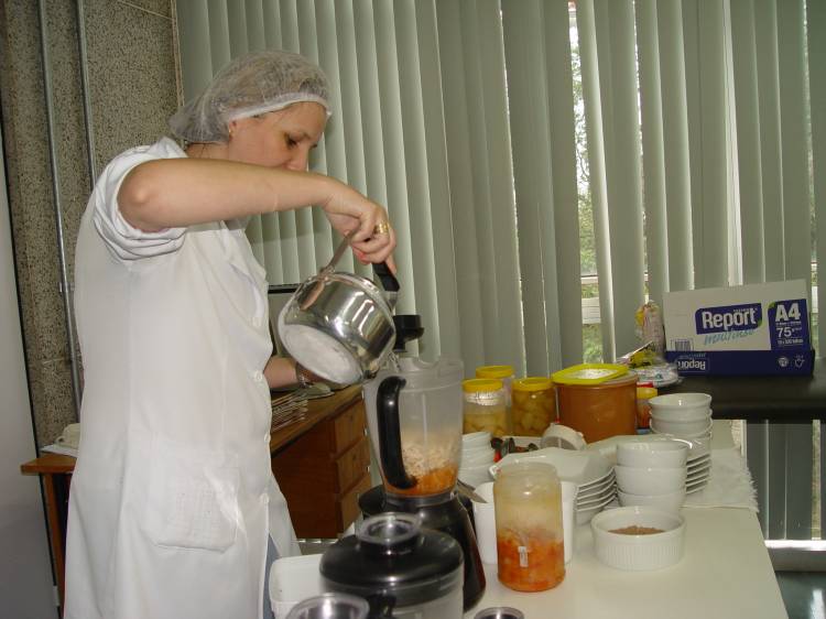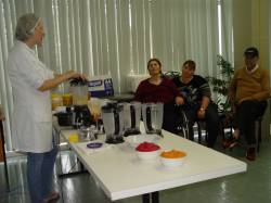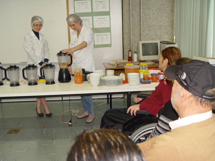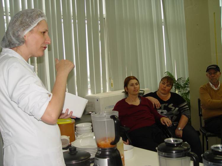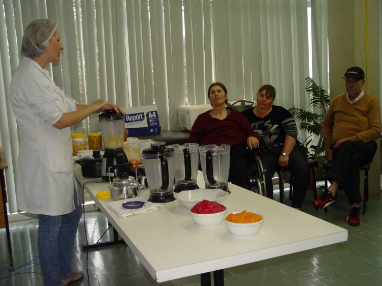 Uma atividade diferenciada foi realizada na tarde de quinta-feira, 16, junto à Unidade de Reabilitação Física – UNIR, que funciona no prédio da UNIJUÍ Comunidade. A atividade esteve voltada aos integrantes do grupo de pacientes com disfagia. O objetivo foi de capacitar os cuidadores, em geral os familiares, sobre o preparo correto dos alimentos para estes pacientes, que só podem consumir os mesmos na consistência pastosa.