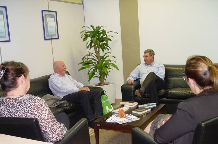 Na sua chegada à Universidade, Gerd Wassenberg foi recebido pelo Reitor, Martinho Kelm, pela Vice-Reitora de Pós-Graduação, Pesquisa e Extensão, professora Evelise Berlezi, e pela professora do Mestrado, Lurdes Froemming. No encontro o Reitor ressaltou a intenção de contar com a experiência de Wassenberg sobre a temática do empreendedorismo, para estabelecer uma parceria concreta que possa viabilizar projetos voltados a este tema na região: “a Universidade tem trabalhado fortemente neste sentido, procurando somar esforços com o empresariado e poder público, no sentido de estimular o empreendedorismo e a inovação como agentes de desenvolvimento”.