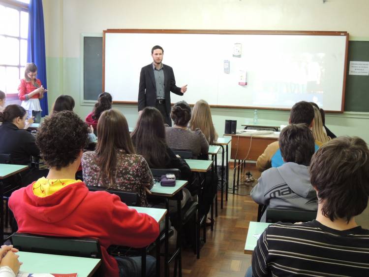 Já os professores que acompanharam os alunos puderam assistir à palestra "Os desafios do profissional docente na contemporaneidade", com o professor Marcelo Blume, do Departamento de Ciências Administrativas, Contábeis, Econômicas e da Comunicação (Dacec), da UNIJUÍ.