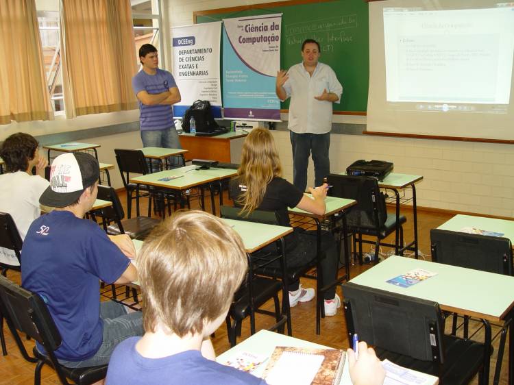 Na chegada cada aluno recebeu um bloco de anotações, caneta e um mapa, com a lista das oficinas e o local onde cada uma ocorria. Foram ofertadas 20 oficinas. Além destas atividades, os alunos puderam tirar dúvidas sobre os cursos desejados, nas bancadas dos departamentos. Professores participaram de palestra com o professor da UNIJUÍ Marcelo Blume, que abordou ‘Os desafios do profissional docente na contemporaneidade’.