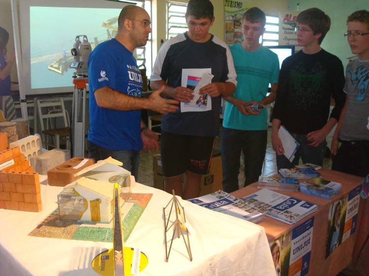 O curso de Engenharia Civil expõe materiais e equipamentos usados nos laboratórios e nas aulas práticas do curso, além de vídeos de grandes construções em diversos países. É distribuído também Guia das Profissões e material de divulgação do Vestibular Verão 2013 UNIJUÍ.