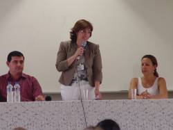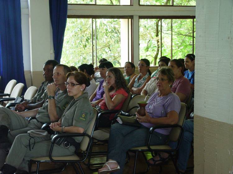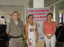 Após a cerimônia de abertura do evento foi iniciado o debate que contou com a professora da UNIJUÍ, Ester Hauser, a delegada Jocelaine de Aguiar e 1º Tenente QTPM, Jorge Schimanoski.