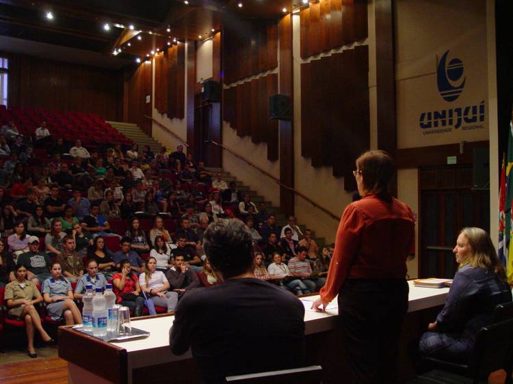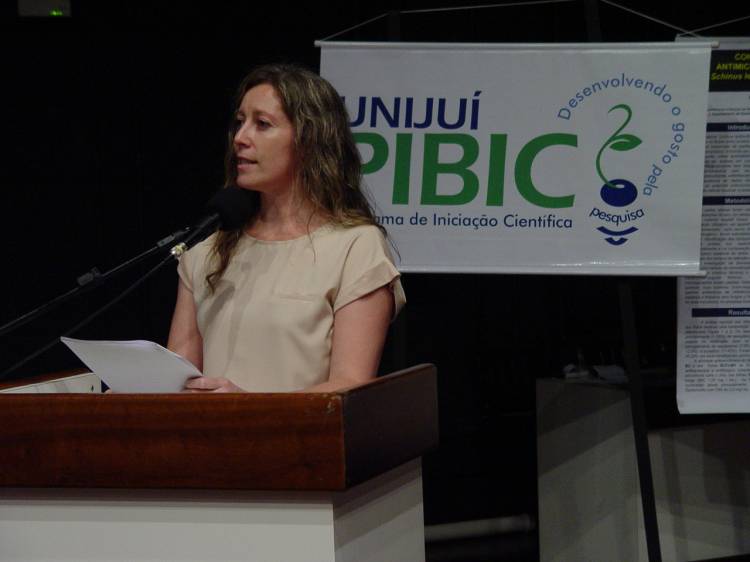 Evelise Berlezi ressaltou o investimento na área da pesquisa e o estímulo à iniciação científica que, segundo ela, garante mais visão de mundo ao estudante, melhora a concentração e a organização, ensina o aluno a lidar com imprevistos, estimula o espírito crítico e a criatividade, além de permitir uma maior troca de informações entre o aluno e o professor. “A UNIJUÍ assume como uma de suas responsabilidades contribuir para o desenvolvimento científico e tecnológico do país através da pesquisa. A Instituição investe no fortalecimento dos grupos de pesquisa, incentivando a interação regional, a formação de redes de pesquisadores, a interação com empresas e a cooperação científica nacional e internacional, estimulando a formação de jovens pesquisadores”, concluiu. Para palestrar neste primeiro Ciclo de Formação, foi convidado o professor Fábio Ribeiro Mendes, doutor em Filosofia pela Ufrgs, que abordou o tema “A Iniciação Científica para Jovens Pesquisadores”.