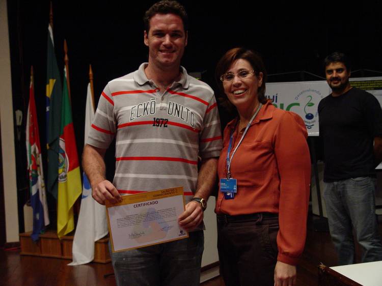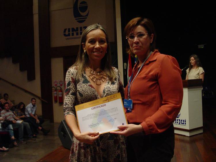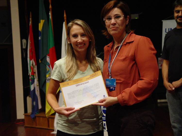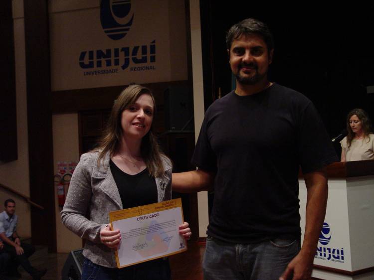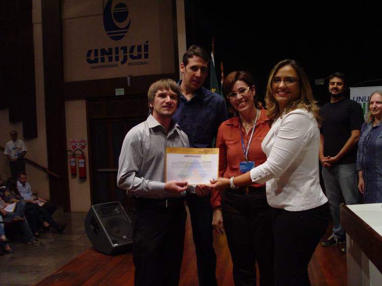 A entrega dos certificados aos autores dos trabalhos-destaque do Salão do Conhecimento 2012 esteve a cargo da Vice-Reitora e dos professores Leonir Uhde e Fernando Gonzalez, membros do Comitê Científico da UNIJUÍ. Nos cinco eventos do Salão do Conhecimento, nas nove áreas do conhecimento, destacaram-se 30 trabalhos, apresentados na forma de resumo expandido e de pôster, e analisados a partir dos seguintes critérios: relevância e originalidade; fundamentação teórica, delineamento do trabalho, coerência metodológica, clareza e adequação dos objetivos; clareza na apresentação dos resultados, correspondência com os objetivos propostos e potencial de aplicabilidade; discussão e conclusão do trabalho; contribuição do autor para o projeto; domínio do conteúdo do trabalho; adequação ao tempo disponível para apresentação; qualidade visual do pôster; e adequação às dimensões definidas pela organização do evento.