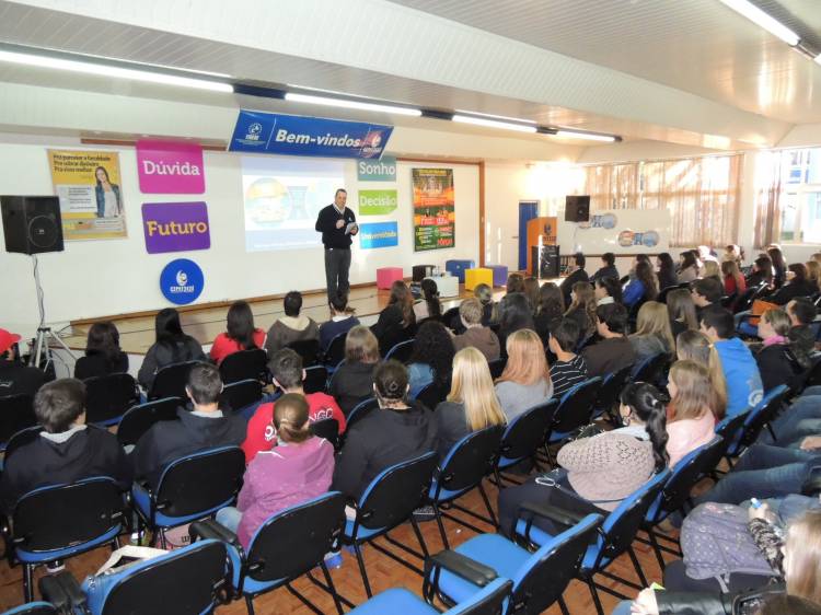 A UNIJUÍ / Campus Panambi recebeu na manhã desta quinta-feira, 16, o evento Saca Dúvidas, que reuniu cerca de 200 alunos de seis escolas, procedentes de Panambi, Saldanha Marinho e Palmeira das Missões. Os alunos receberam informações sobre os cursos ofertados pela Universidade e as possibilidades de bolsas e financiamentos estudantis, além do Guia das Profissões 2013.