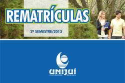 Está aberto o período de rematrículas para o segundo semestre de 2013 para todos os acadêmicos dos cursos de graduação da UNIJUÍ, por meio do Portal do Aluno.