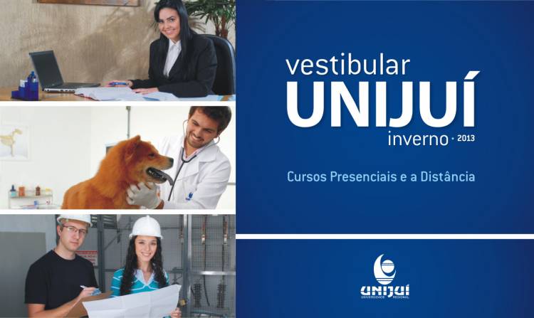 Estão abertas as inscrições para o Vestibular Inverno 2013 UNIJUÍ, que acontece no dia 7 de julho, às 8h30. As inscrições podem ser feitas no Portal UNIJUÍ até o dia 1º de julho, com possibilidade de pagamento até o dia 2 de julho.