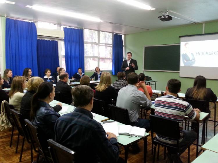 O professor da UNIJUÍ, Luciano Zamberlan, iniciou a atividade trazendo os principais conceitos, a importância de um bom atendimento e destacou a importância de todos apoiarem as iniciativas de endomarketing institucionais.