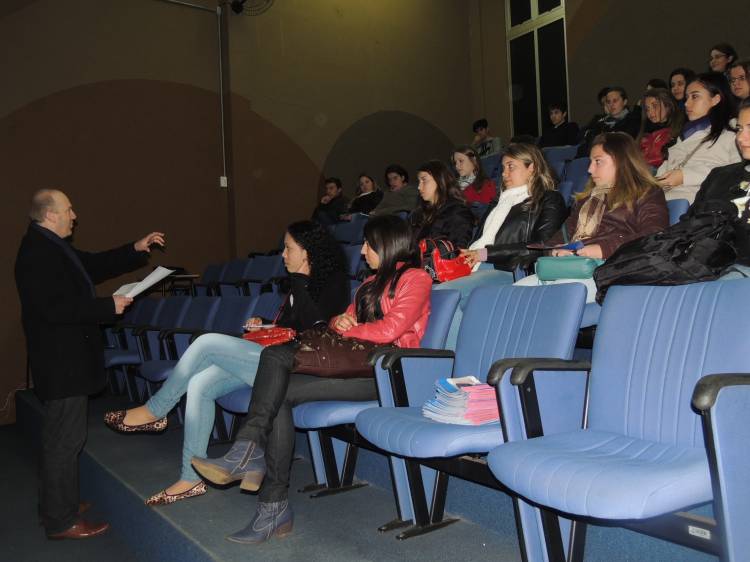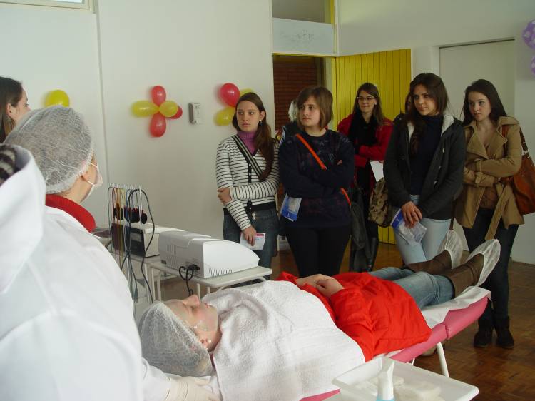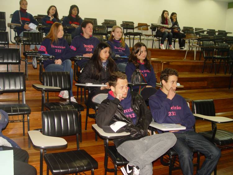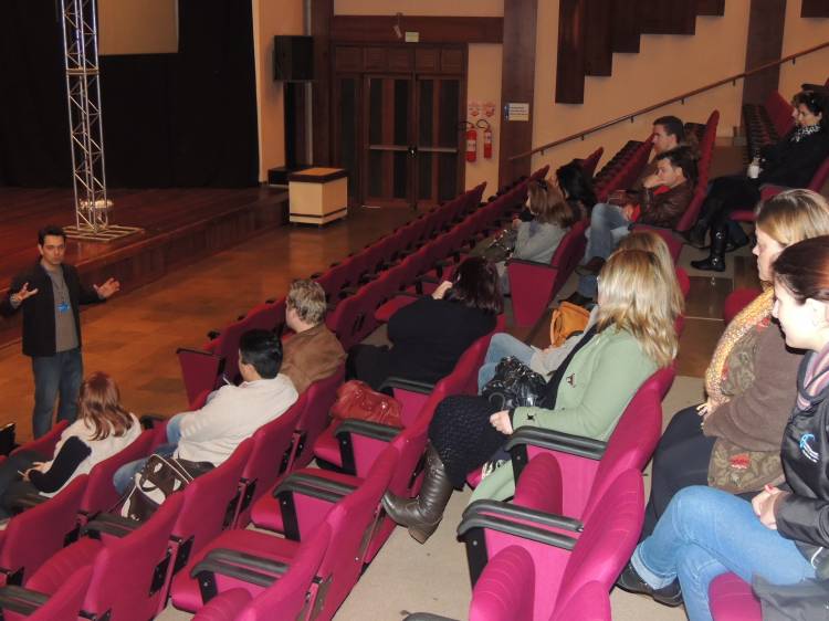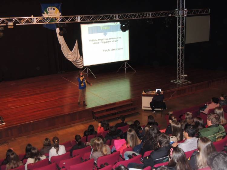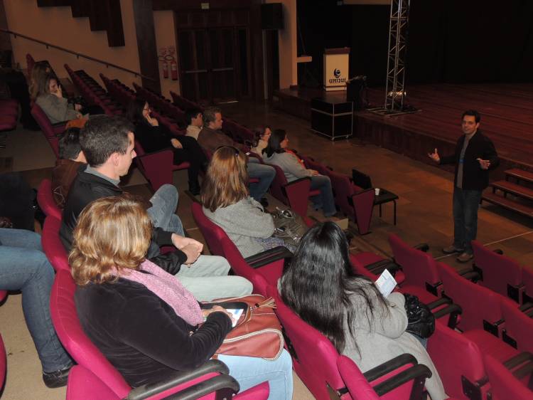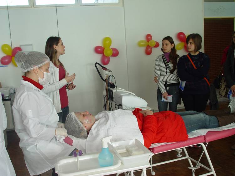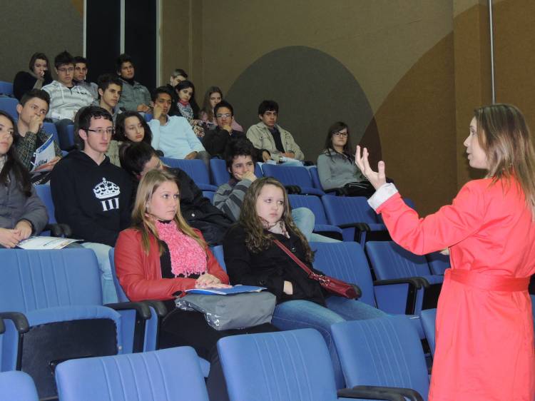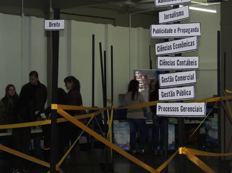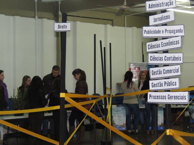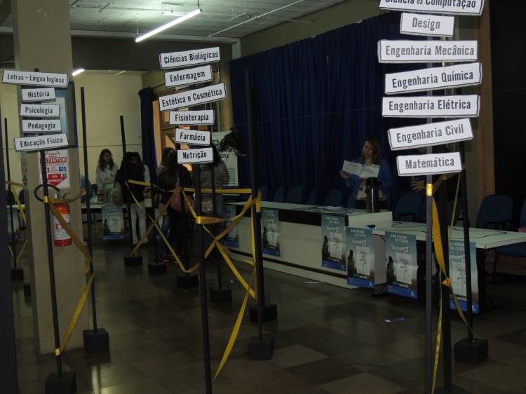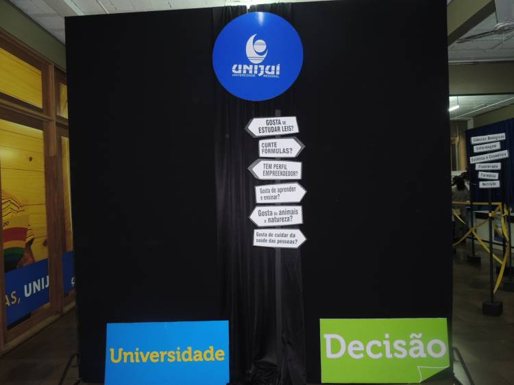 Neste primeiro dia de evento, a programação incluiu as oficinas e a mostra de cursos, no turno da manhã, e uma palestra dirigida aos professores das escolas, que neste ano teve como tema “Postura do professor e cuidados com a saúde”, a cargo do professor do Curso de Fisioterapia, Márcio Strassburger. Duas atrações inéditas chamaram a atenção dos alunos neste primeiro dia: o túnel montado na entrada da Mostra de Cursos, por onde os alunos tiveram de atravessar para chegar ao auditório, passando por palavras como escolha, decisão, futuro e sucesso, dando uma ideia da importância desse momento. A segunda atração foi a cabine fotográfica, onde os alunos puderam tirar fotos, levando uma lembrança do evento. Na foto, os alunos podiam posar com diferentes placas, contendo mensagens ou os cursos preferidos.