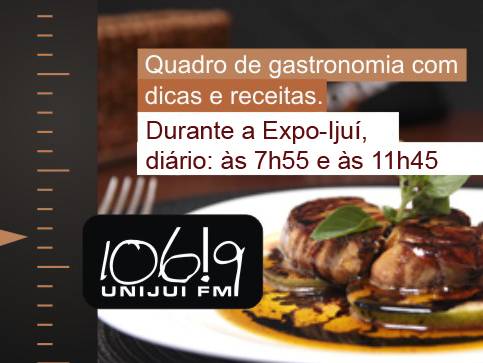 Em parceria com a União das Etnias de Ijuí (UETI), a UNIJUÍ FM apresenta de 9 a 19 de outubro, edições diárias do GASTRÔ 106, com a gastronomia de cada etnia. Além das tradições dos países, os programetes trazem dicas de receitas, segredos de cada culinária e o cardápio para os dez dias de Expo-Ijuí/Fenadi.